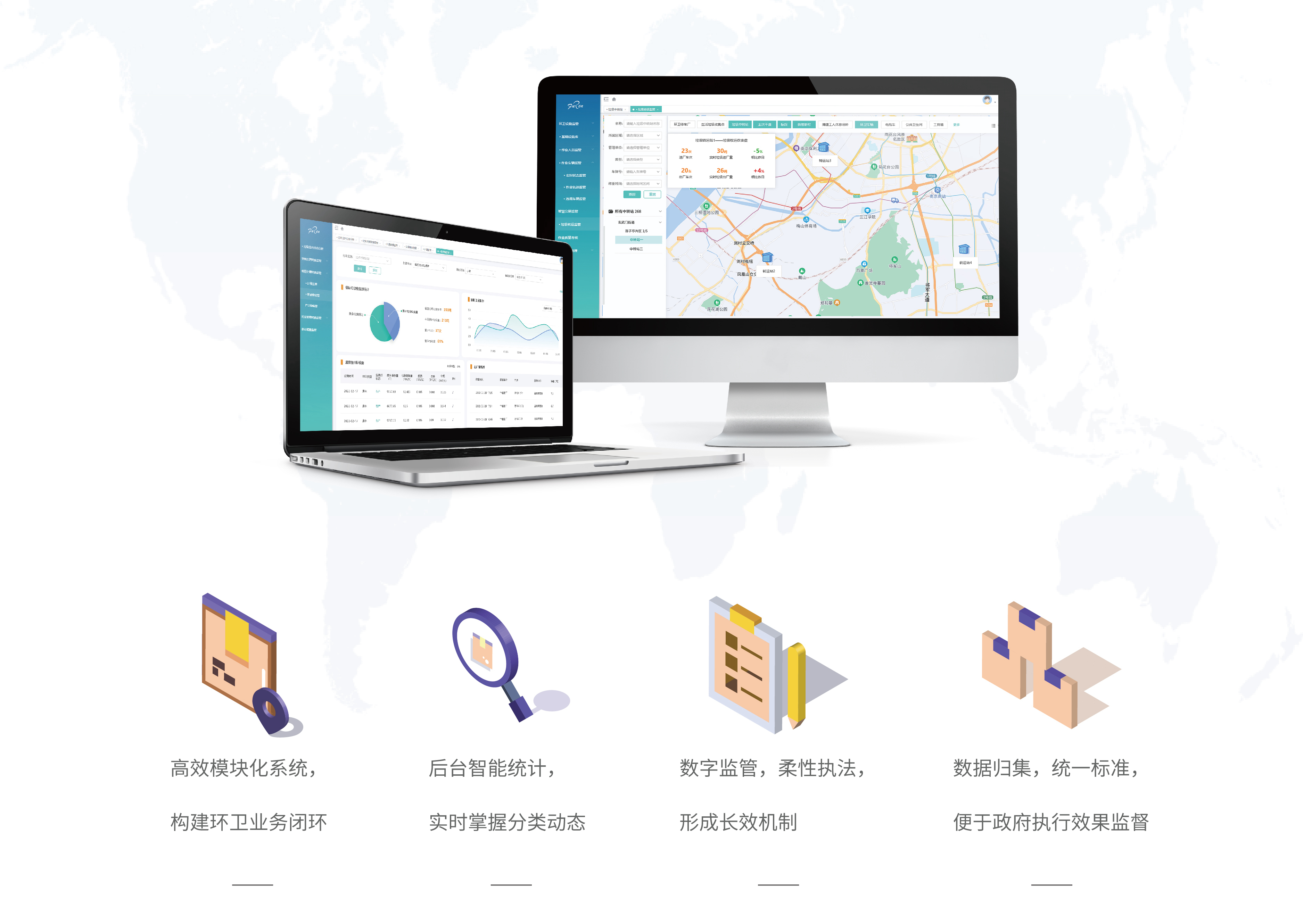 富仁環星云是富仁智能推出的新一代基于SAAS云服務的環衛解決方案,將物聯網、大數據、云計算等先進技術和理念融合,致力于為垃圾回收行業客戶、環衛企業、垃圾終端處置企業、政府主管單位提供智能化的終端設備及規范化、精細化運營管理平臺,有效覆蓋環衛機械化作業過程中的監管盲區,提升環衛作業信息化水平,同時為居民提供更優質的垃圾投遞服務。