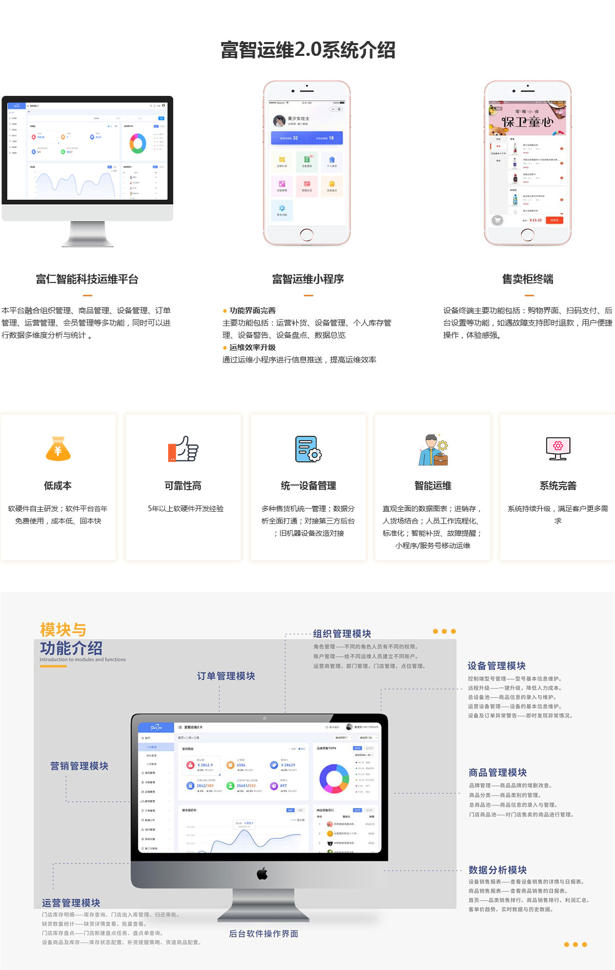 富智運維2.0是富仁智能推出的新一代基于SAAS云服務的智能售貨機平臺解決方案。將新零售、物聯網、大數據、云計算等技術和理念融合,致力于為零售行業客戶提供更智能的終端設備及運營管理平臺,同時為消費者提供便捷優質的消費服務。